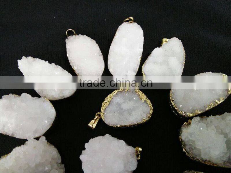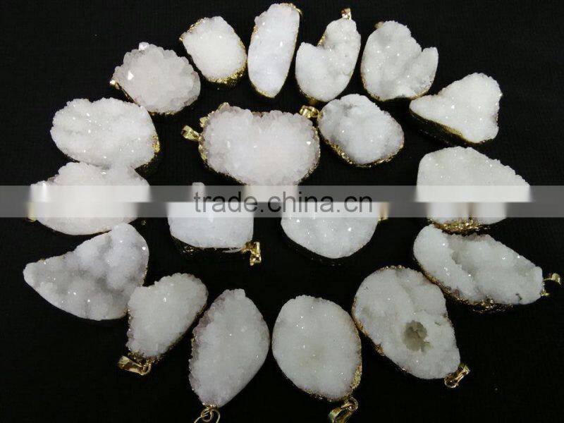 Stunning Gold Electroplated Druzy Pendant high quality with gold plated on edged, brazil druzy agate pendants