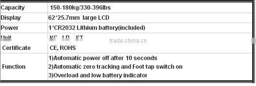 Paramater of body fat testing weight scale