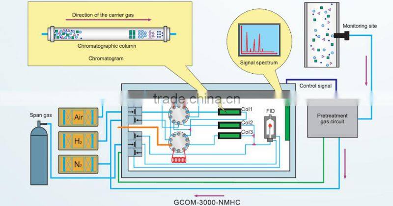 GCOM-3000-VOCs is a VOCs monitoring product which use international mainstream chromatographic methods. It can monitor organic pollutant gases such as methane, the total hydrocarbon, non methane total hydrocarbon, low-carbon aldehyde ketone, benzene series( benzene, toluene, xylene, ethyl benzene, isopropyl benzene) and part of halogenated hydrocarbons by using FID detector and high performance chromatographic separation column.
