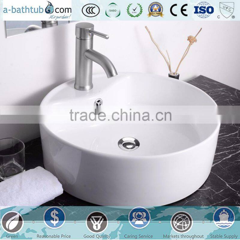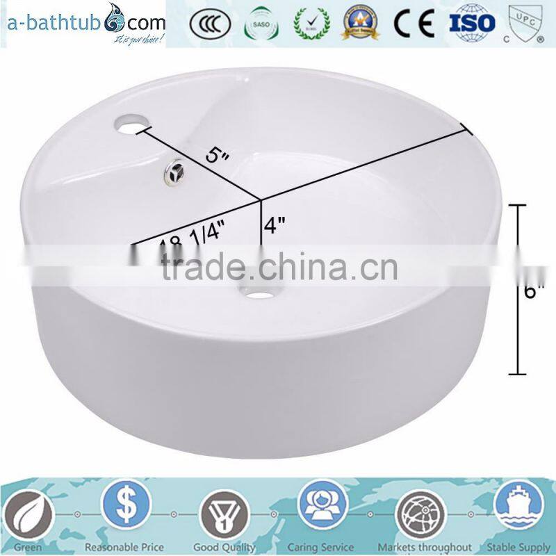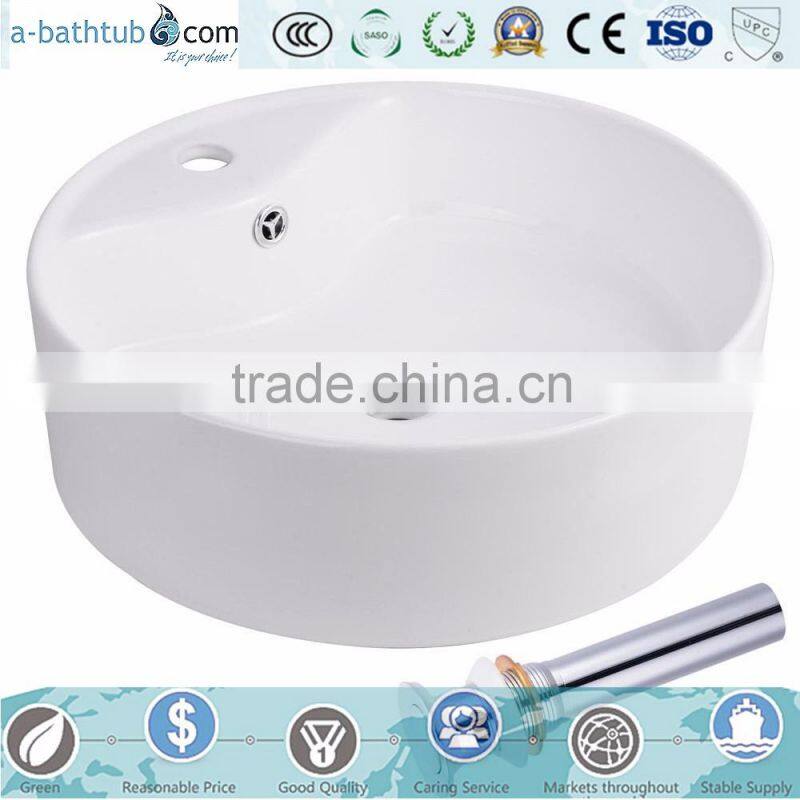 Round Bowl Porcelain Vessel Sink White Ceramic Basin With Free Drain
