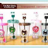 Transparent Plastic Coffee Cup With Spoon Big Size Cartoon Cup