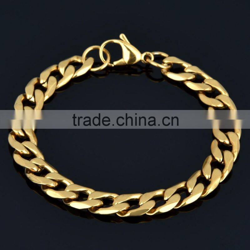 Latest Fashion Stainless Steel Gold Plated High Polished Curb Chain Bracelet for Men Women
