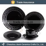 New Product Modern Round Black Ceramic Embossed Dinner Set