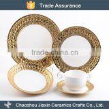 European Style White Ceramic Gold Decal Luxury Embossed Dinner Sets