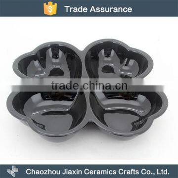 Cheap Durable Clover Shaped Black Ceramic Snack Dish