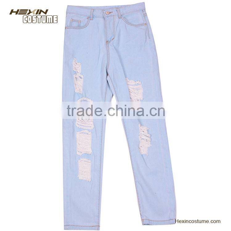 Woman Pants 2016 Light Blue Wash Destroyed Denim Jeans Fashion
