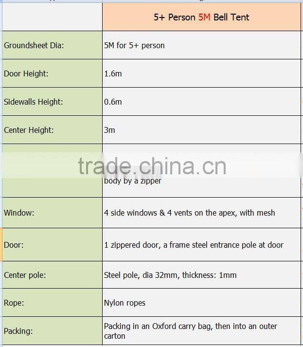 Outdoor 5M Canvas Camping Bell Tent Glamping Tent