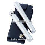Stainless Steel Cigar Tube Holder Covering Leather W/ Humidifier