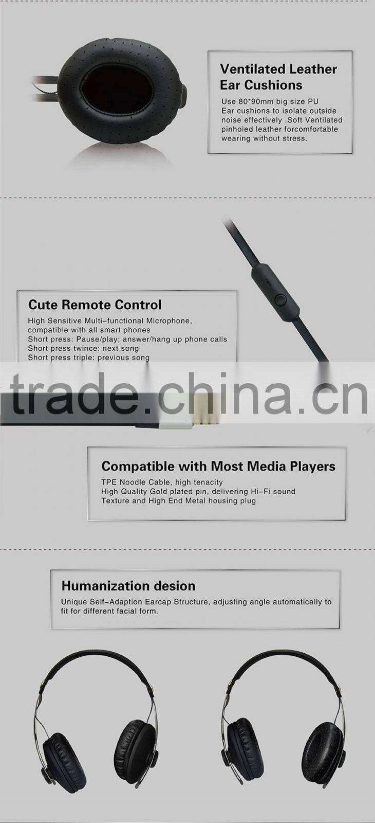 Fashionable Factory Price Remote Control Hi-Fi Stereo Headphones for Samsung and Iphone