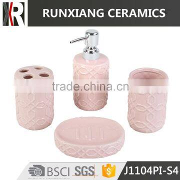 Fashion Design Pink Glazed Ceramic Bathroom Accessories Set