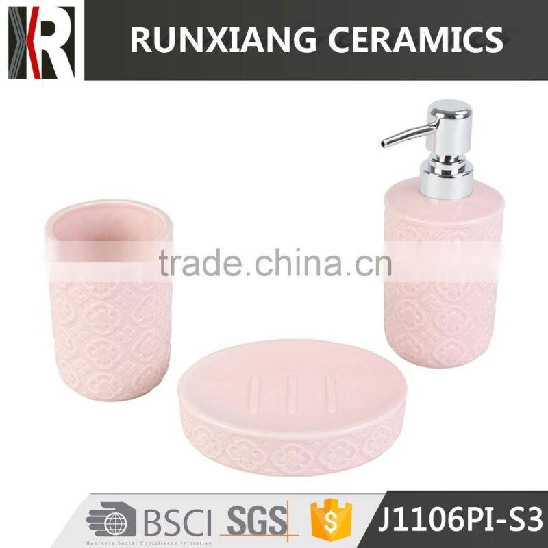 Pink Glazed Ceramic Bathroom Accessories Set
