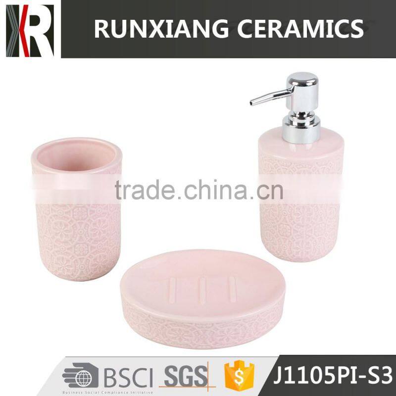 Fashion Design Pink Ceramic Bathroom Accessories Set