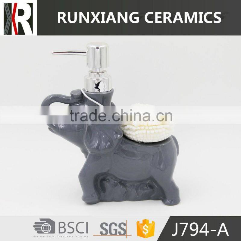 Hot Sale New Design Glazed Grey Color Elephone Ceramic Soap Dispenser Supplier's Choice