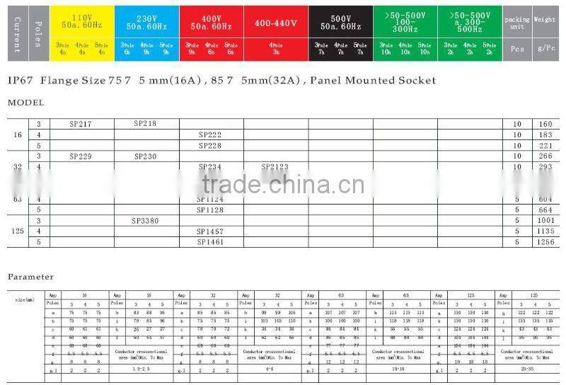 HIGH QUALITY IP67 INDUSTRIAL SOCKET 230V FLANGE SIZE 75 7 5 MM(16A)