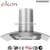 CE GS SAA CB Approved Curved Glass 90cm Wall Mounted Extractor Hood