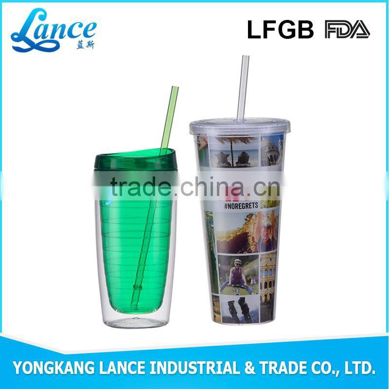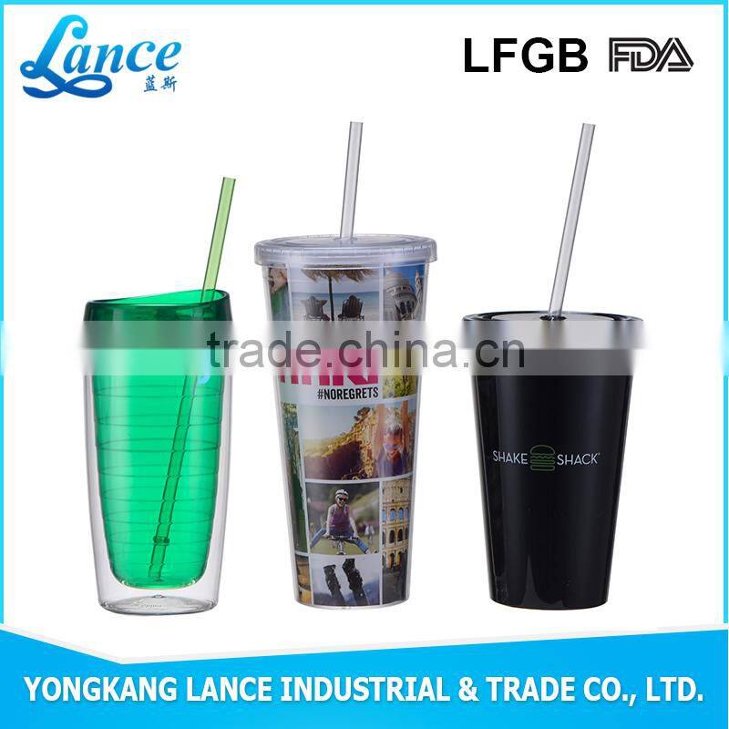 16OZ 20OZ PS/AS double wall hard plastic cup with lid and straw