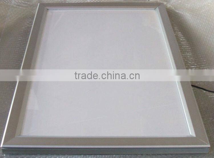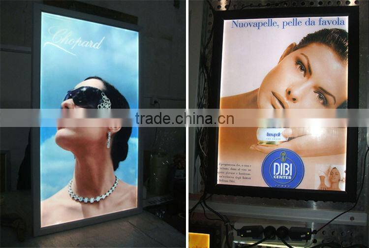 *Open type:open four covers of the box,take down front plate and ,then replace picture *Visible surface:Single *The width of border:35mm *Suitable size:small and medium *Input voltage: 12V/24V *Power:12w-120w *Package:bubble bag,cartons,adding plywood frame for seafreight. *Structure:the Edgelight LGP,aluminum frame,SMD LED/T5 light source *Frame color:oxidated alloy aluminum, other colors can be customized.