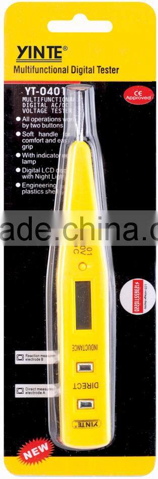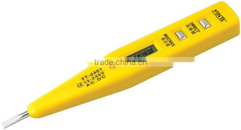 It can test 12-250V altermating and direct voltage, no battery drive, with the function of contact test and induce test. Direct key can test phase line, null line, and display the voltage.