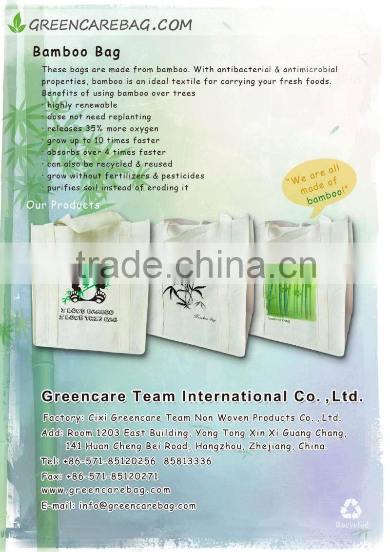 Products: ultrasonic welded PP non woven bag, lamination bag and cooler bag; RPET bag, bamboo bag, PLA bag, polyester bag, paper non woven bag, cotton bag, garment bag, storage box, box cooler bag and apron.