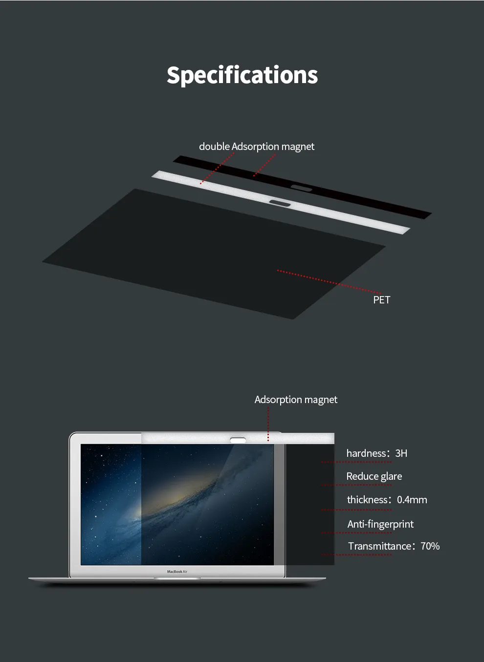 Black Two Sides Privacy Screen Protector Filter for Notebook Screen Film Anti-scratch