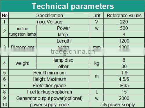 1. lamp disc consist of 4*500W high efficient energy-saving lamp. Realize 360°adjustable lighting up and down.