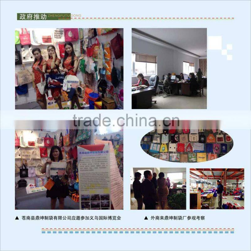 Cangnan Dingkun Bag Factory is one of the leading manufacturers that specialize in producing nonwoven bags, pp woven bags, shopping bags, drawstring bags, cooler bags, suit covers, promotional bags and fashion bags.