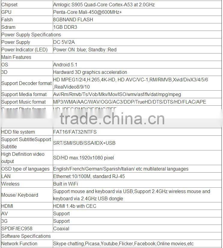 ram 1gb/8gb android 5.1 tv box