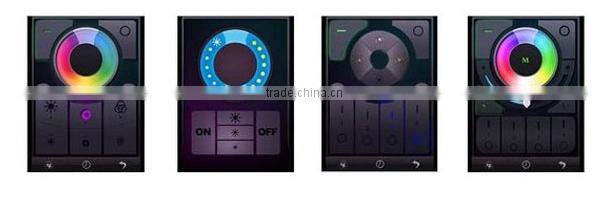 fashionable and elegant looking,with simple and practical functions of color changing and brightness dimming,the capacitive touch screen desigh make the remote so easy!