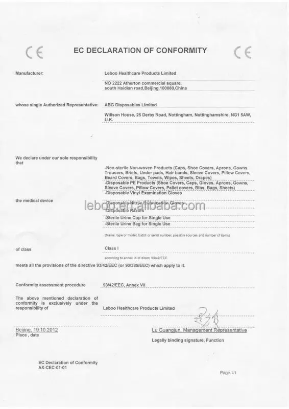 Free Samples and High Quality Waterproof Disposable PE Sleeve Cover With CE Certificates