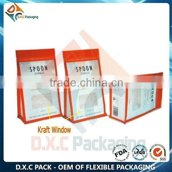 Factory New Food Paper Bag With Window and Zipper in Flat Bottom Shape