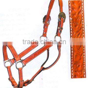 1.Hand carved leather show halter2. Silver casted fitting & buckle
