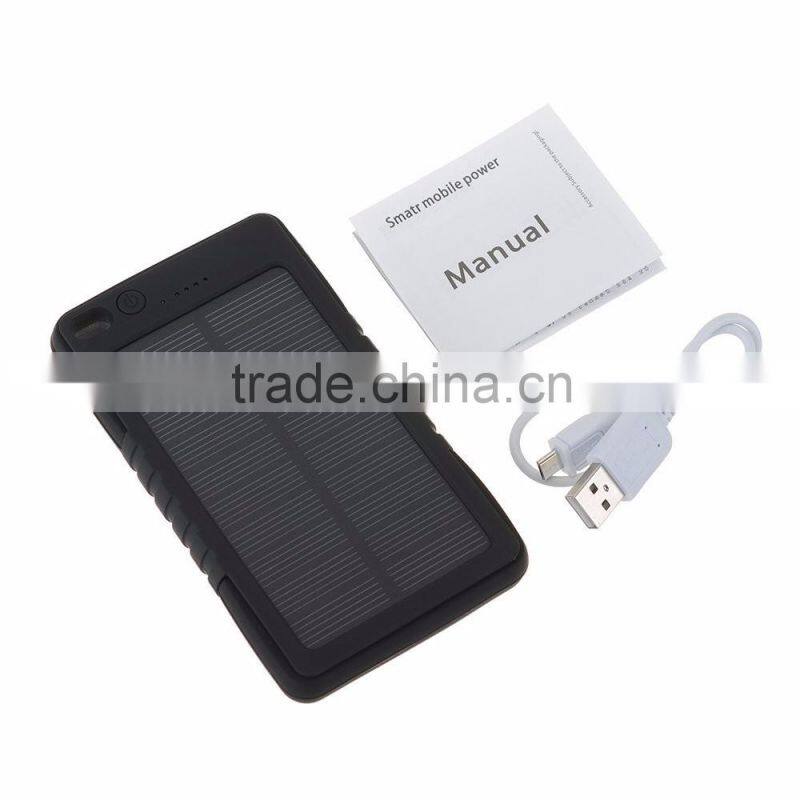 Newest 5000mAh solar panel charger, with great waterproof/shockproof/dustproof performance.