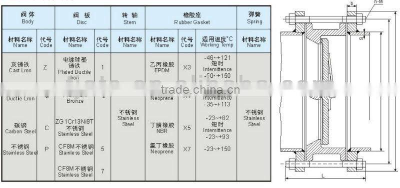 wafer butterfy-type check valve Suitable Mediums: Fresh water, sewage, sea water, air, steam, food, medicine, oils, etc.