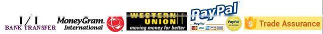 Accept : T/T,Western Union,Paypal,Moneygram,Escrow.