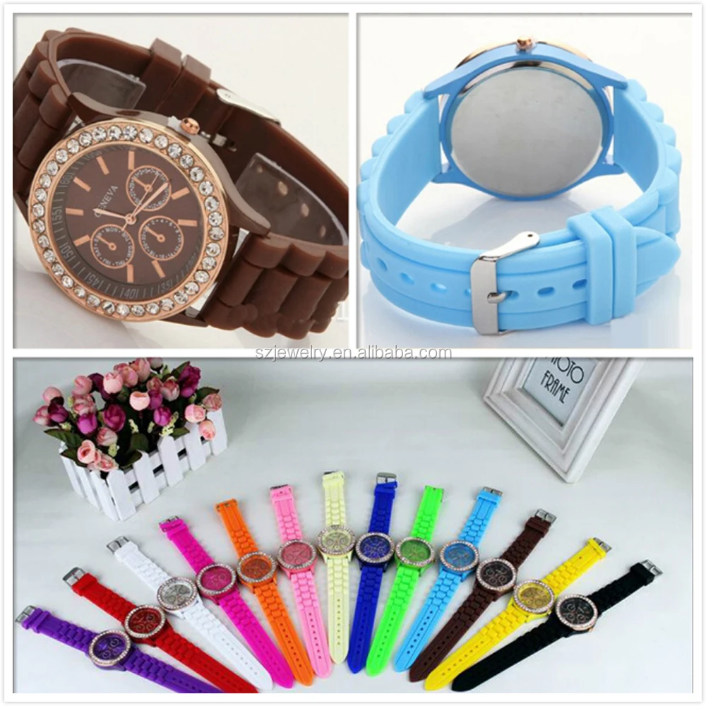 Wholesale 2016 Charm Geneva Silicone Wristband All Colors Cheap Sport Watch Silicone