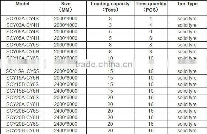 It is used elasticity solid tire, will enhance trailer's loading capacity and life, used the hollow tire ,when run in bumpiness road can lighten the damnification.