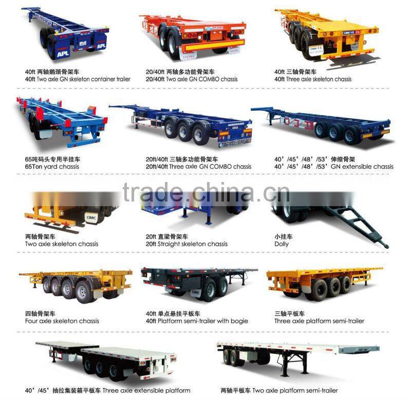 flat bed semi trailer and skeleton semi trailer ,used for transport 20ft,40ft,45ft,53ft container or steel etc. Size:7160/12350/14200/14850/16500x2500x1490mm;