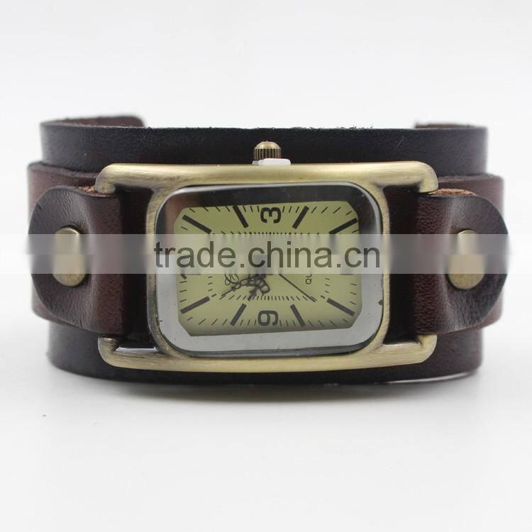 Wholesale Cheap Custom Logo Alloy Case Shape Genuine Leather Quartz Watch