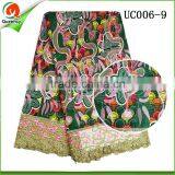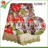 Ghana Kente Wax Hollandis Ankara Fabric With Cord Guipure Lace UC007-1