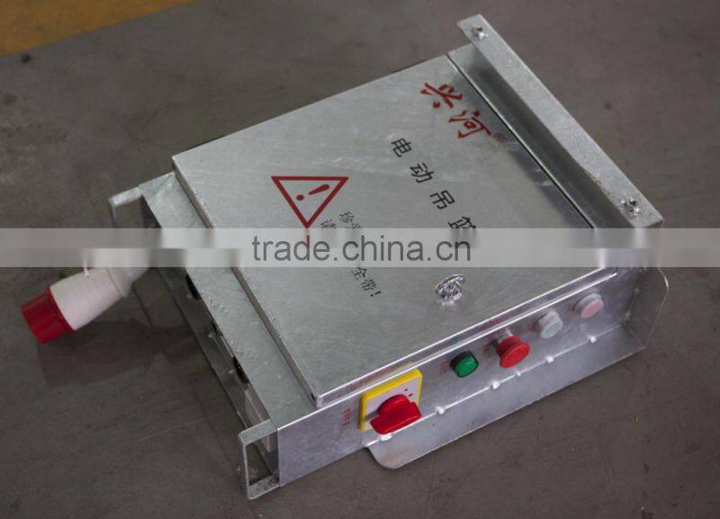 With hot galvanized steel,the suspension mechanism uses 80*80,70*70 square tube, thickness is 3.75mm, front and rear girder is 2.35mm thickness, middle girder is 2.48mm, thickness of working platform is 2.2mm.
