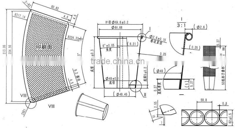DEBAO-118S Intelligent paper cup machine adopt iron board isolation structure, designing cam transmission system under the iron board. With automatic oil spray lubrication system, the longitudinal axis transmission structure & indexing cylinder cam driving fast. All those ensure machine longer running life and easy for machine maintance. Machine running under PLC control & Electrical sensor tracking & Servo motor feeding method. High quality request customer can add CCD camera dection system by option. The machine production capacity can up to 120cups/min for 2.5-16 oz(75-460 cc)cold/hot cups.