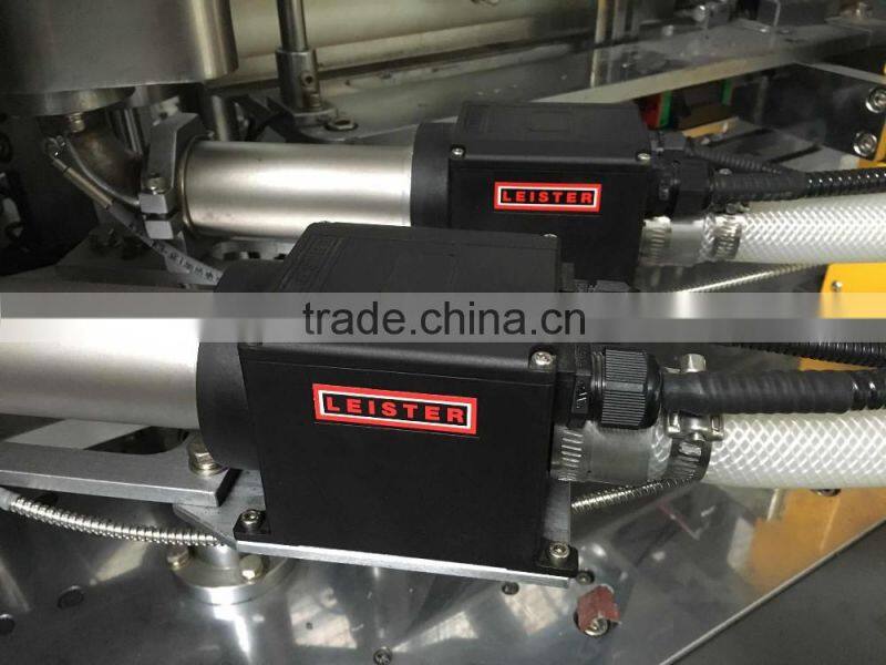 Swizerland Leister heating device is equipped for cup body and bottom sealing.