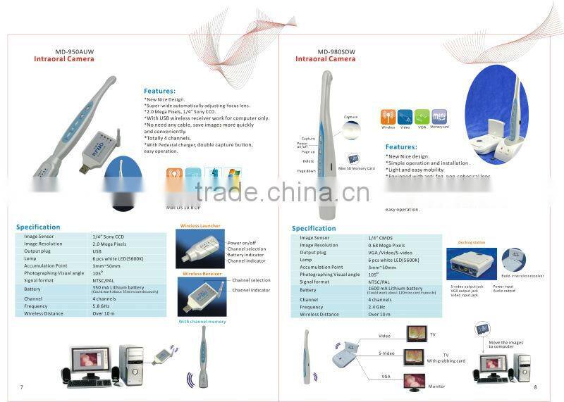 0.68 mega pixels wireless CMOS intraoral camera with Micro SD card wireless intraoral dental camera Model: MD-980SDW