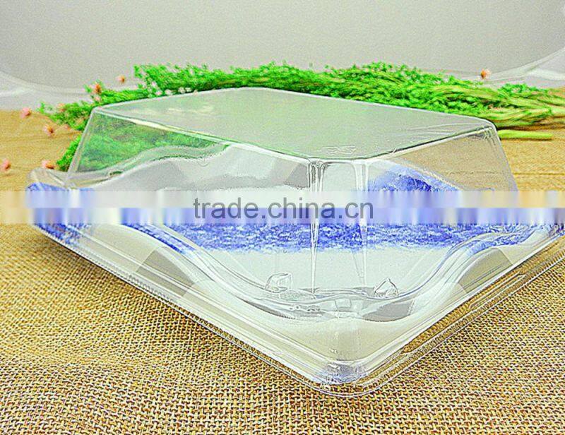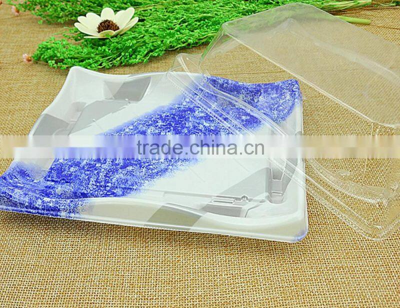 New OPS Plastic Disposable Embossing Sushi Box Tray With Curve Brim