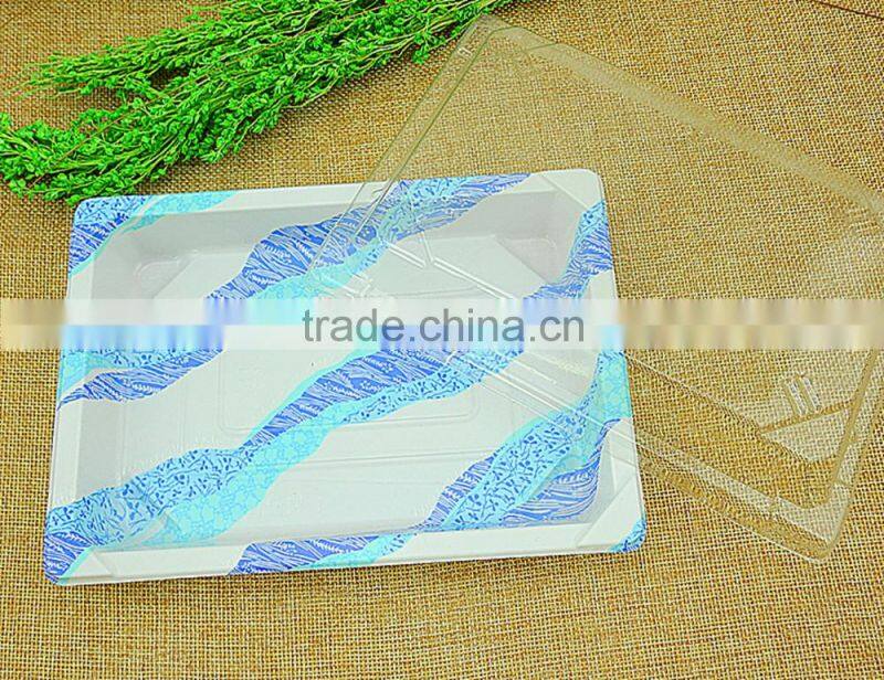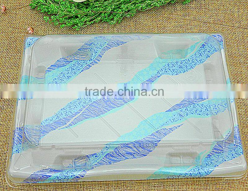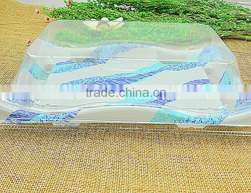 New OPS Plastic Disposable Embossing Sushi Box Tray With Curve Brim