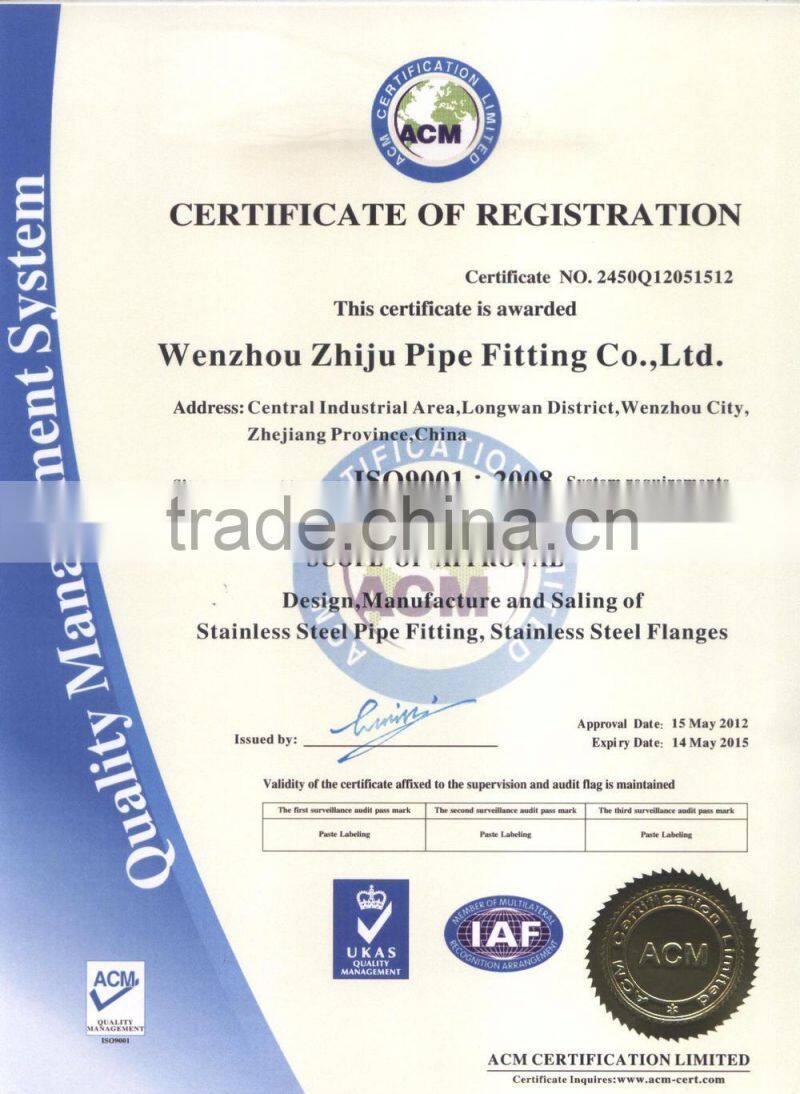 The company was established in 1991, possessing perfect equipment and advanced technology, producing such as elbows, tees, reducing pipes;stub ends;pipe caps and flange etc. and other pipe fittings by our production team of powerful strength. Stainless steel and other materials can be produced according to National standards.Size:1/4”-60”.Material:TP304L、TP316L、TP310、TP321、TP904L、DUPLEX31803、32750、2520.Main Standard: GBGBJISDINGOSTANSI.Our products have been largely exported to Europe, America, Middle East, Southeast Asia and Australia, dozens of countries and regions. The products can be widely applied in fields of chemical industry, military-industry, medicine industry , energy industry, electricity ,shipbuilding, etc.