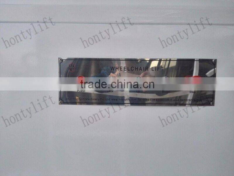 This is one wheelchair lift with four wheels ,it can be moved very conveniently. it is suitable for home for disabled or elderly people .it can be installed indoor or outdoor very easily.