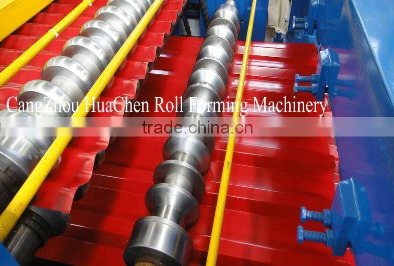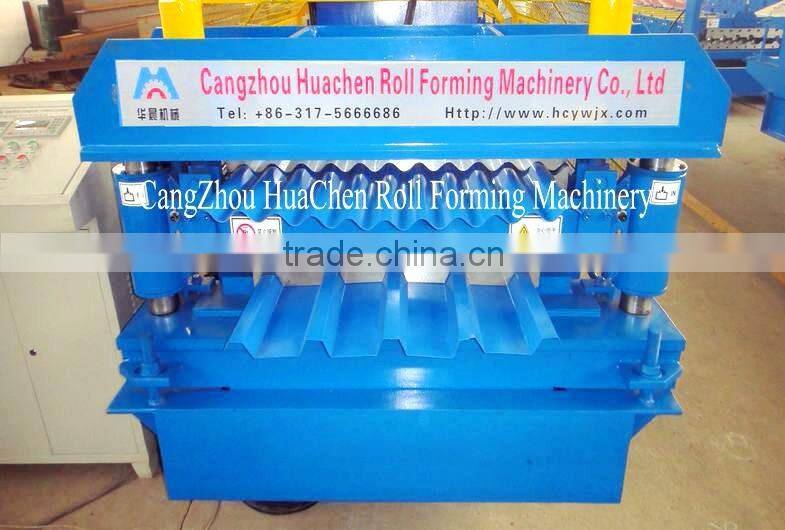 Our two deck steel roof sheet roll forming machine can produce various of steel roof and wall panel, it is a new building materials, the products are widely used as the roof and wall of factory, warehouse, garage, gymnasium, exhibition center, cinema, theatre, etc. It has many advantages, such as easy installation, short building period, beauty, light weight but high strength.