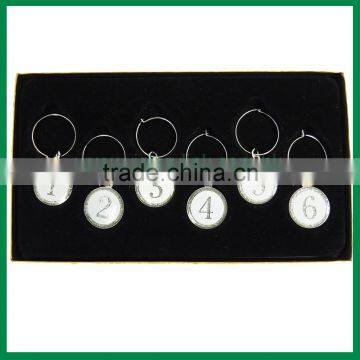 Glitter Round Charm With Screen Printed Metal Wine Charm Set