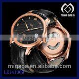 High Quality Natural Leather Strap Automatic Watch for Men Rosy Gold Plating